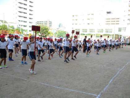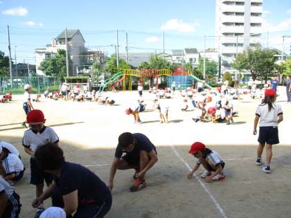 10月23日(日)の本番の運動会に向けて、各学年が一生懸命に練習をしています。今日は全学年で開会式や入場行進の練習をしました。台風一過の青空のもと、胸をはって行進したり、ラジオ体操の練習をしたりと、みんな真剣に取り組んでいました。そのあとは、全員で運動場の小石をひろいました。少しでもけがが減りますようにと、みんながんばってひろっていました。