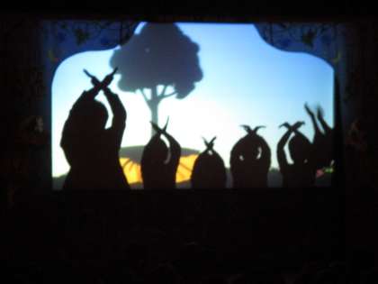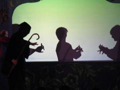 本校体育館にて、劇鑑賞会がありました。「魔法つかいのおとぎばなし」という影絵劇で、1本目は「魔法つかいビーストと少年ウィリー」、2本目は「魔法の呪文、ムタボール!」というお話でした。影絵ということで、たった3人の方が、腕と指を巧みに使って、動物や恐竜を本物のように映し出してくれました。最後は、「光と影の手遊び」が行われ、代表の子どもたちが教えてもらいながら影絵に挑戦していました。驚きと感動の時間でした。