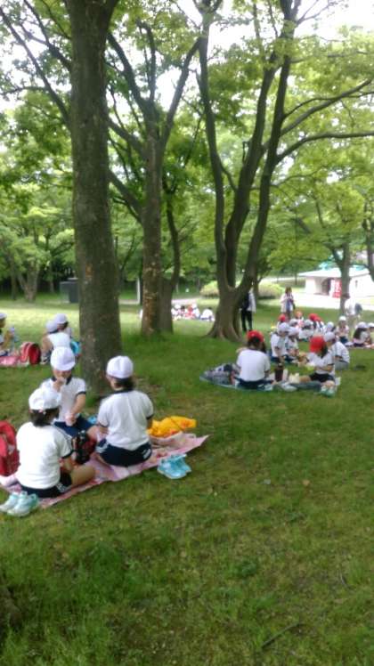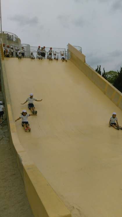 5月16日(火)3年生と4年生は大泉緑地公園に行きました。さわやかな空のもと、まず、公園内で飼育されている羊と出会いました。そのあと、いろいろな遊具のある広場で元気に遊び、お弁当を食べました。おやつタイムの後は、芝生広場で鬼ごっこやシロツメクサ遊びで楽しい時間を過ごしました。楽しみにしていた大きなすべり台は迫力満点で、時間いっぱいまで何度もすべっていました。