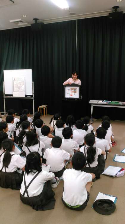 5月17日、3年生は東成図書館の見学に行きました。普段は入らないお部屋を見せていただいたり、特別な図書の提示装置について教えていただいたりしました。図書館利用についての紙芝居を見たあと、事前に考えてきたいろいろな質問に対し、館長さんがていねいに答えてくださいました。3年生の子ども達は、「また図書館に来て、いっぱい本を読みたいな」という気持ちが高まったようでした。