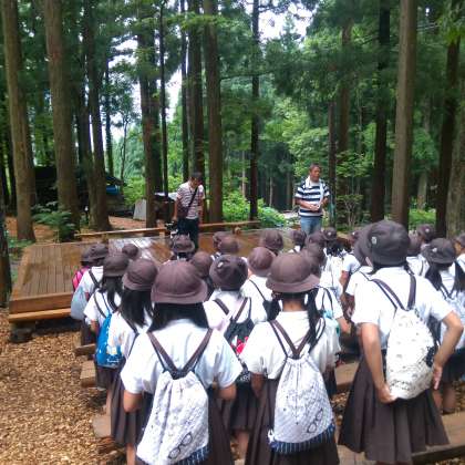 森のステージで開舎式を行いました。3日間よろしくお願いいたします。