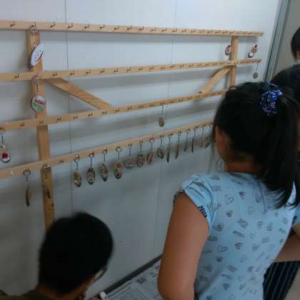 雨模様の為、午前中にウッドキーホルダー作りを行いました。思い出に残る宝物が出来上がりました。