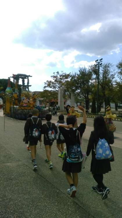 にぎやかなパレードがやってきました。思わず見とれてしまいます!アトラクションも空いていて、乗り放題です!