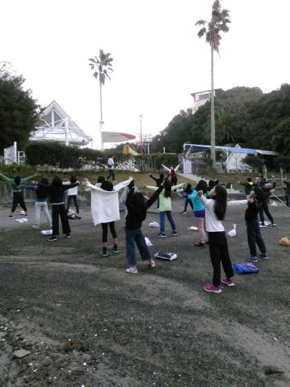 伊勢志摩、雲ひとつない快晴です!朝の集いでは、ラジオ体操で身体を目覚めさせました。今日も1日がんばります!