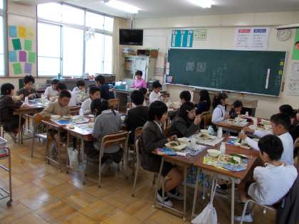 四年生の教室をのぞいてみると、「ちまきおいしい!」「ちまきが去年より甘い!!」「のりかけるの忘れてた!」と、とても楽しそうにみんな食べていました。