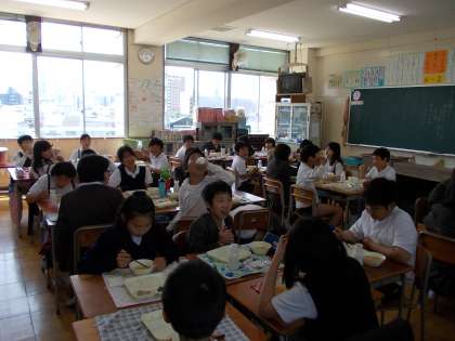 6年生の教室では、「グリーンアスパラガスがちょっと苦手…」という児童もいましたが、さすが6年生!残さずしっかり食べていました。