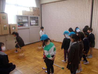 1年生が、あやとりやだるま落とし、トゥホ(韓国・朝鮮の輪投げのような遊び)