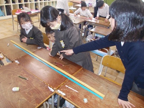 2年生の算数は、長さの学習です。今日は、30cmものざしを使って、手の長さを調べました。低学年の子どもたちにとって、竹尺のメモリを読むのは、慣れるまでは少し練習が必要です。グループごとで協力しながら、自分や友だちの手の長さを、5飛び、10飛びで数えながらがんばっていました。エコで曲がりの少ない、竹尺の良さも感じてくれるといいなと思います。