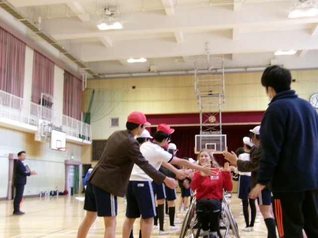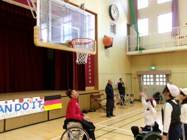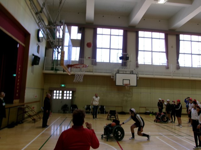 ゆっくり動いてくれたり、あえて、ボールを渡してシュートさせてくれるなど加減をしてくれるところもありましたが、鋭いターンや、スピード感あふれるプレー、確実なシュートなど、本物の技が出ると驚かされました。また、6年生チームのシュートが決まると、皆で歓声をあげて喜びました。