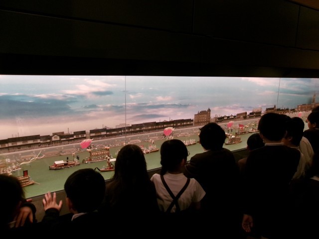 天神祭りの展示では、「水の都」大阪の祭礼の様子が鳴り物や威勢のいいかけ声とともに再現されていました。