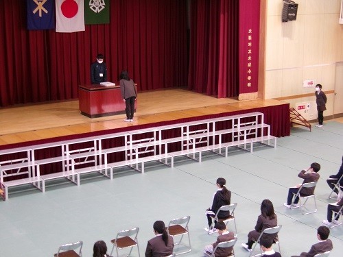 いよいよ小学校生活も残すところあとわずかの6年生です。今日は、月曜日に行う予行前の最後の練習をしました。一つひとつの動きを丁寧に進めていました。卒業式を、力を出して取り組んでくれることと思います。