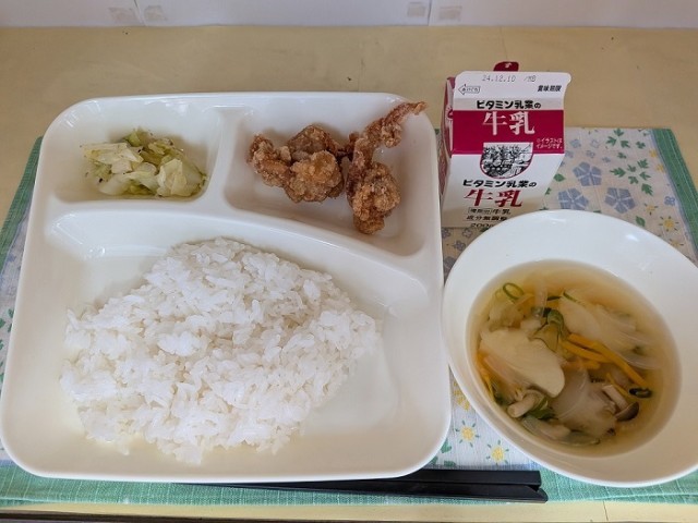 今日の給食は大人気メニューの「鶏肉のたつたあげ」でした。