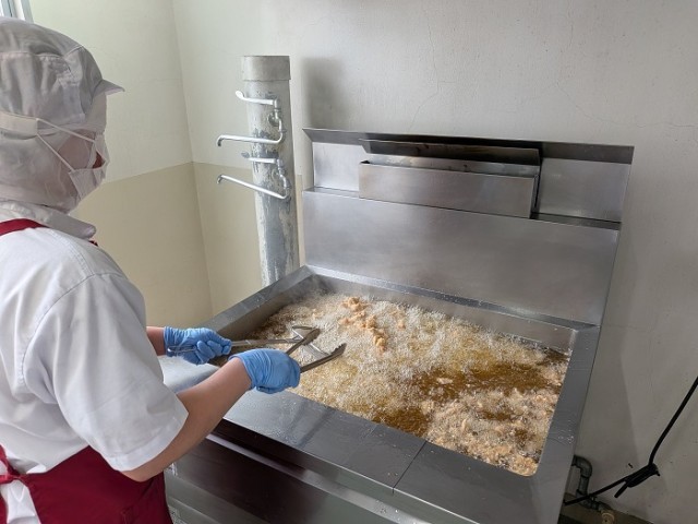 大量の油で揚げることでカラッと揚がりおいしく仕上がります。