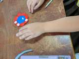 2年生は、ミャクミャクメダルを作っていました。 折り紙で、ミャクミャクが作れたこ...