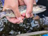宿から少し歩いたところにある沢で、魚つかみです。 高原の水の冷たさに、いい声、い...