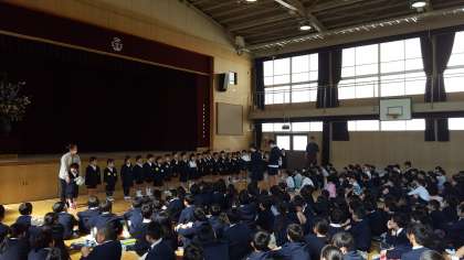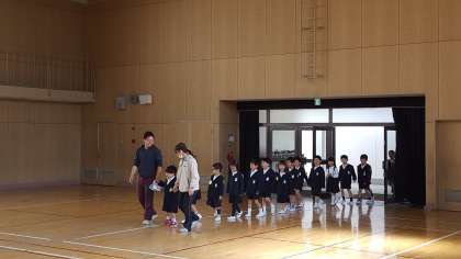 新入生が全員の拍手の中入場し、全学年の子ども達と対面しました。