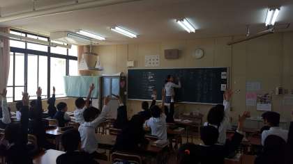 5年生は国語科の授業でした。短歌や俳句の中に隠されている「物の名」を見つける授業でした。見つけた子は積極的に手をあげて発表していました。とても楽しい授業でした。