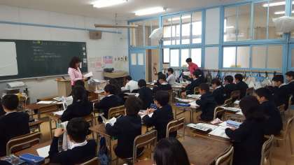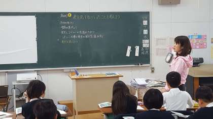 4年生は算数の授業でした。東京とシドニーの気温を比べグラフに表わす学習でした。