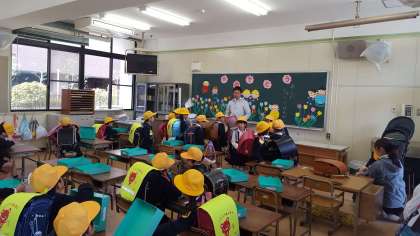 帰るグループごとにあいさつをして出発します。元気な声で「さようなら!」とあいさつができました。