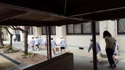 今日も、給食当番の子ども達が元気な声で「いただきます。」と声をかけます。みんな、おいしい給食をしっかり食べて、午後もがんばりましょう。