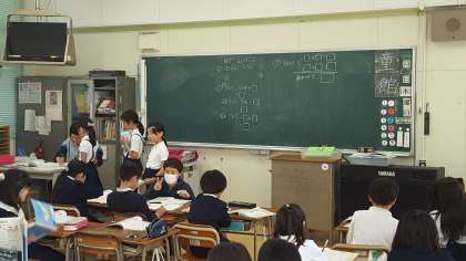 3年生は、算数の授業でした。みんな練習問題をがんばって解いていました。