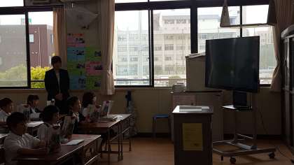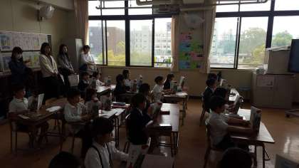 2年1組の参観授業は、国語でした。保護者の前で大きな声で音読ができていました。