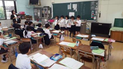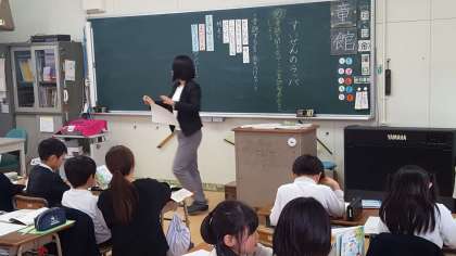 3年生も国語でした。ミニ音読発表会でした。グループで前に立って上手に発表していました。