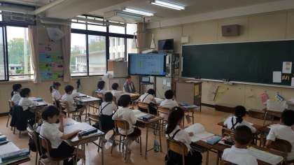 2年1組も算数でした。ひっ算の足し算を、デジタル教科書を使って学習しました。式に合わせて図が移動したり、とても分かりやすかったです。