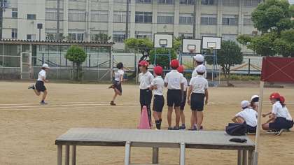 5年生が、体育の授業で50メートル走を行いました。10連休が明けたら運動会の練習も始まります。運動会に向けての取り組みもスタートしています。