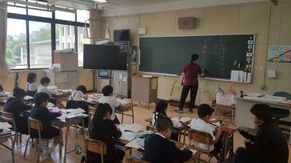 2年1組は、国語で「かん字のかき方に気をつけよう」の学習でした。大きく手を振って書き順を覚えていました。