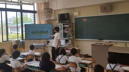 2年2組は、デジタル教科書を使って算数の足し算の学習をしていました。