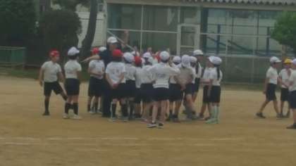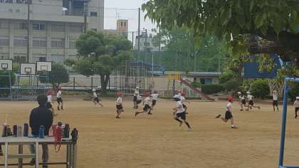 3年生の運動場での体育の様子です。運動場をいっぱい使って、走り回っていました。
