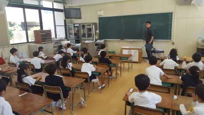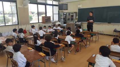 1年生の授業の様子です。クレパスを使って絵をかくところでした。