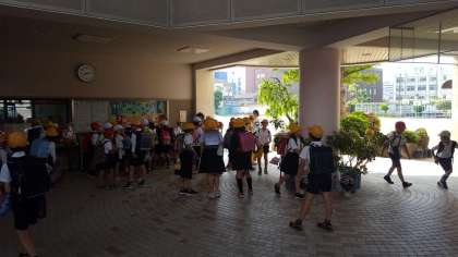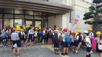 3・4年生が遠足の用意をして登校しています。今日は天気の心配はいりませんが、暑さには気をつけましょう。