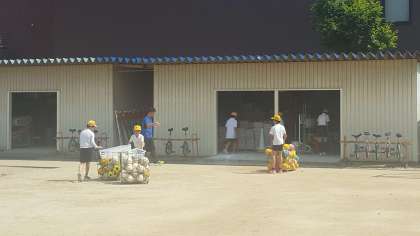 運動委員会は、体育倉庫の整理と、運動場のライン引きをしていました。もうすぐ運動会です。