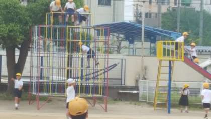 午前中、雨が降らなかったので、運動場は賑わっていました。ドッジボール・遊具遊びにみんな夢中でした。