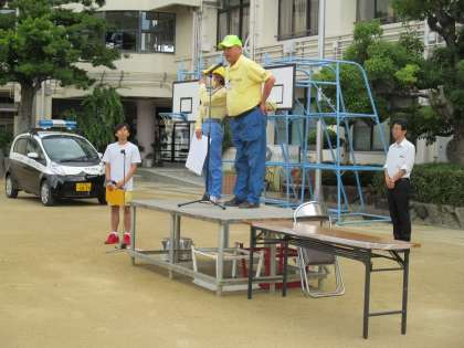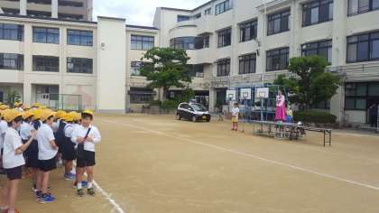 区の安全パトロールの方と、民族クラブを担当していただくソンセンニムの紹介が今日の児童集会でありました。