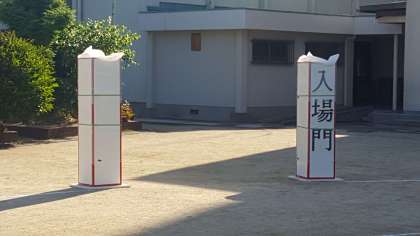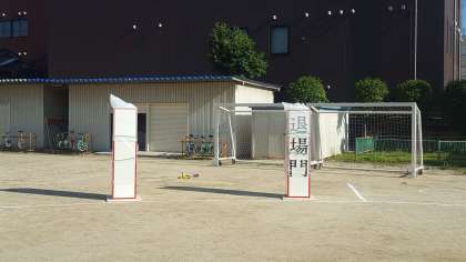 本日放課後、職員作業で入退場門を設置しました。門があるだけで雰囲気がすごく変わりました。明日からは、この門を使っての練習が始まります。