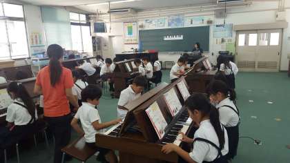 3年1組は、音楽の授業でした。オルガンの鍵盤の押さえ方を学習していました。