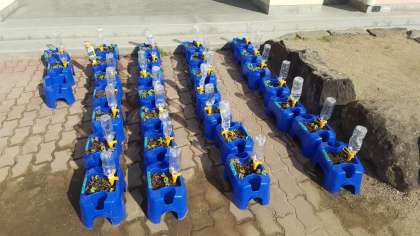 1年生の朝顔が、芽を出しています。しっかり育てましょう。