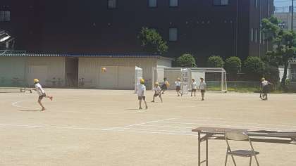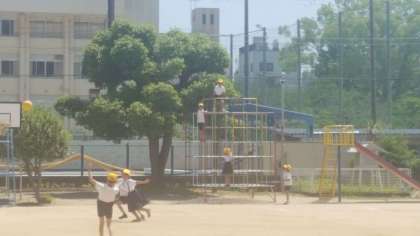 暑い昼休みでしたが、子ども達は元気です。運動場に出て体を動かしています。