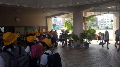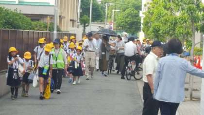 蒸し暑い朝ですが、子ども達は元気に登校しています。