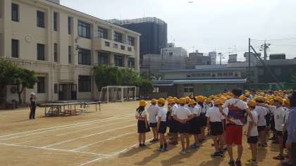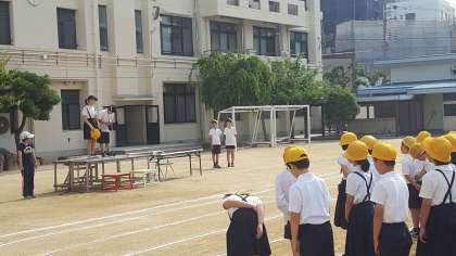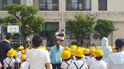 全校朝会がありました。校長先生からは、運動会に向けて体調を整えよう・熱中症に気をつけようとの話がありました。