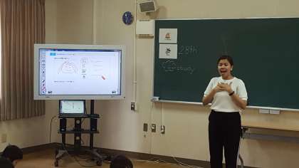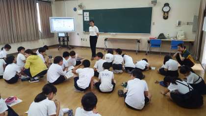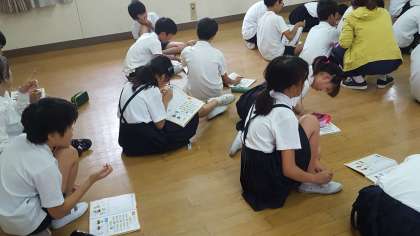 6年生は、C−NETの先生の自己紹介を聞いて、聞き取った内容を教科書に書き込んでいました。集中して話を聞いていました。