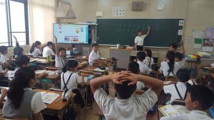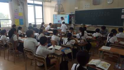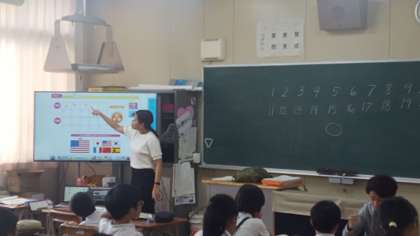 5年生は、教室で英語の学習をしました。数字を使ったゲームをして結果を発表していました。みんな元気よく挙手し、答えていました。