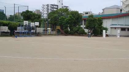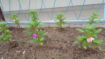 朝から、全体練習の準備をしています。ホウセンカに花が咲きました。