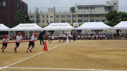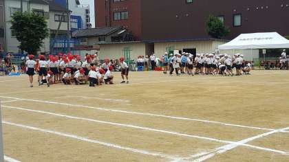 3・4年生の団体演技は、「中道タイフーン」でした。最初から最後まで集中しないといけないので、大変な競技ですが、みんなで協力してがんばりました。