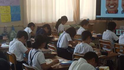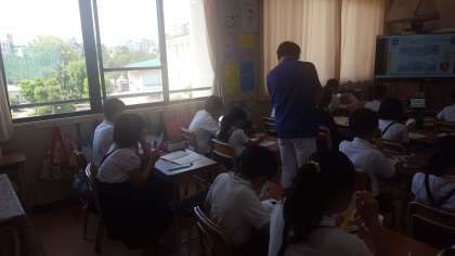 5年生が、全国歯みがき大会に参加しました。これは、全国やアジアの子ども達が同じビデオを見て、歯磨きのことを学んだり、歯磨きのトレーニングをする授業です。