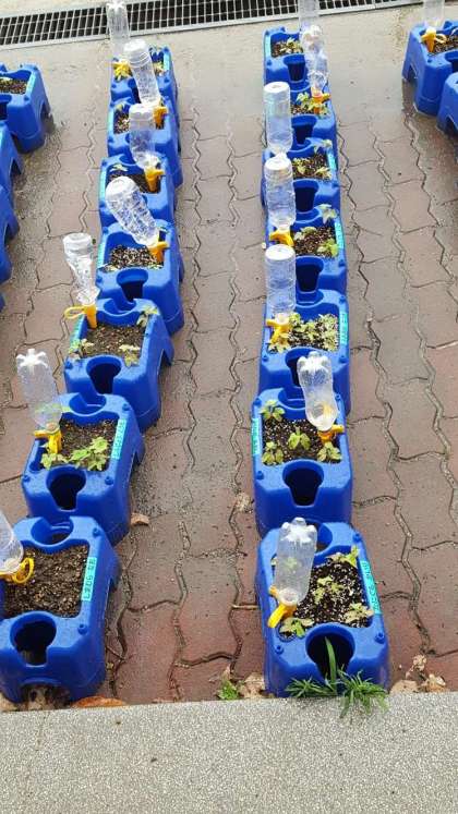 藤は、今を盛りに勢力を伸ばしています。1年生の朝顔は、本場が出始めました。今日は水やりはいりません。