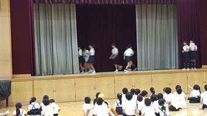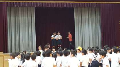 講堂で児童集会がありました。運動会があったので久しぶりの集会になりました。
